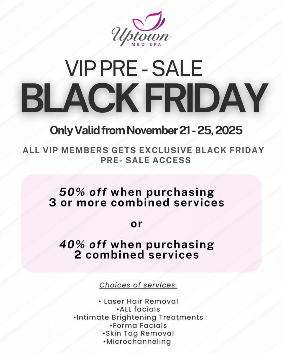 From November 21–25, unlock up to 50% off your favourite treatments when you bundle and treat yourself the way you deserve. Spots always go fast, so secure your glow before everyone else gets access.